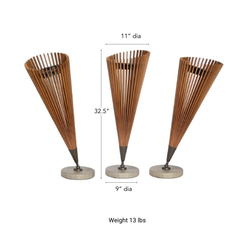 The IKON reflects the full potential of modeling furniture and lighting. It is constructed from aluminum with a teak finish, ensuring both durability and elegance.