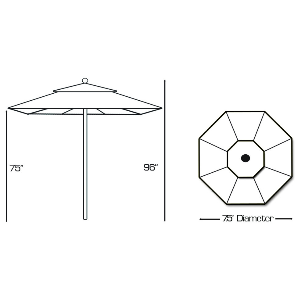 - 7.5' round canopy ideal shade coverage for up to 42” table