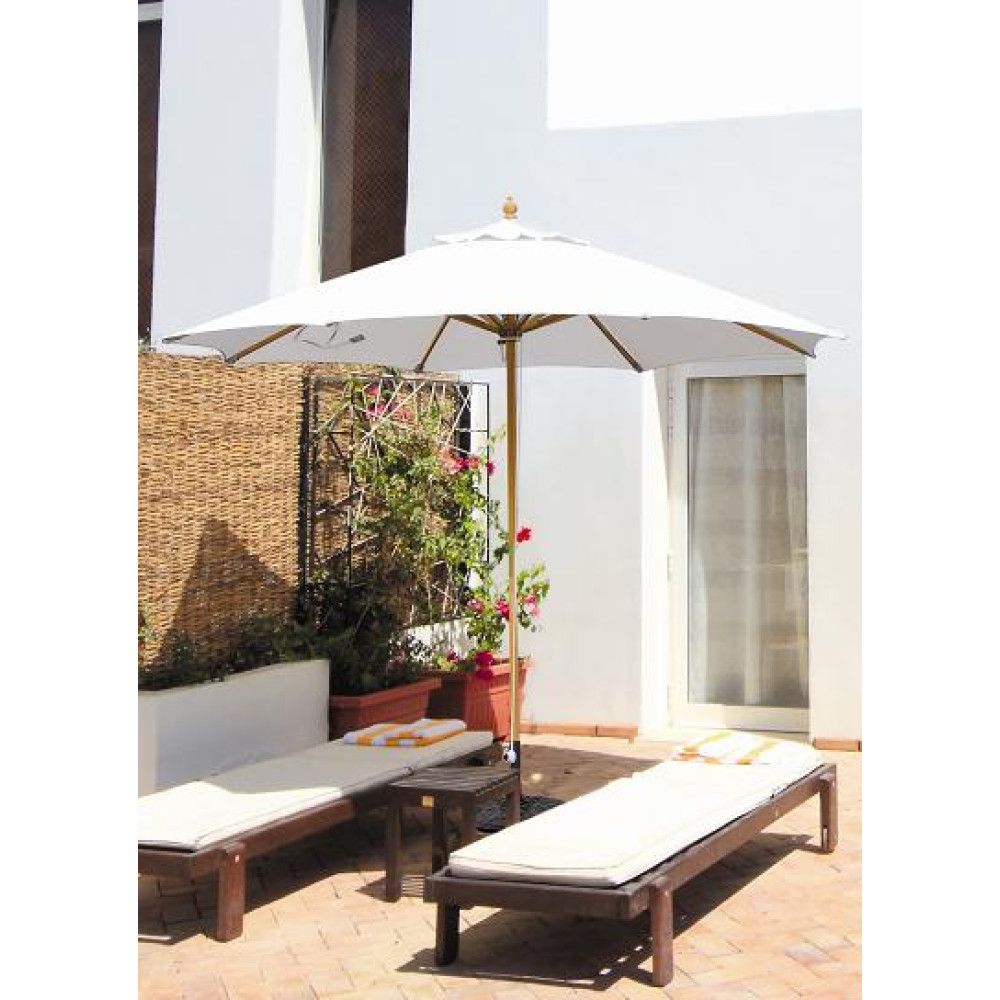 Galtech’s 11’ market umbrella features 6 layers of marine grade varnish with a four pulley lifting system creating more leverage making it easier to lift and close the umbrella. Constructed from first grade Indonesian hardwood, the exceptional quality of this wood is similar to ash wood in strength and durability. This umbrella is the perfect fit for commercial or residential uses. Umbrella canopies come in a wide variety of quality fabrics, including Sunbrella.