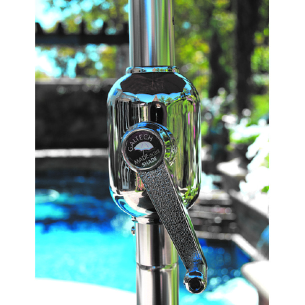 Galtech’s 9’ teak rotational tilt market umbrella features marine grade teak wood, rotational tilt, and a crank lift mechanism. You don’t need to live by the beach to experience the exceptional quality of teak wood. This teak umbrella is ideal for any residential applications.